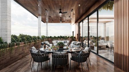 Cuenta con 1029 m2 de construcción, dividido en 3 niveles, terrazas con impresionante vista a las montañas.