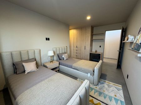 Planta alta: recámara principal con vestidor y baño, 2 recámaras secundarias con baño y vestidor cada una y closet de blancos.