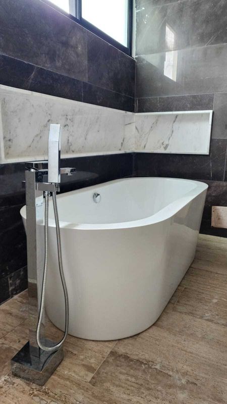 • * área de ducha forrado en mármol