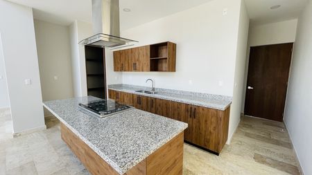 Estufa, campana, gaveteros en cocina, muebles de lavabo en baños, clósets en recámaras, despensa y blancos, tanque para gas estacionario 300 lts., calentador.