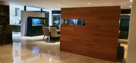 mármol y Pisos de Bambú en habitaciones.