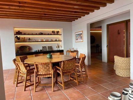 La casa cuenta con sala y comedor tanto interior como exterior, una amplia cocina, baño de visitas, 4 recamaras con baño, casita del vigilante, un cuarto de servicio con baño,garage 6 autos, bodega, cuarto de máquinas y calefacción central.
