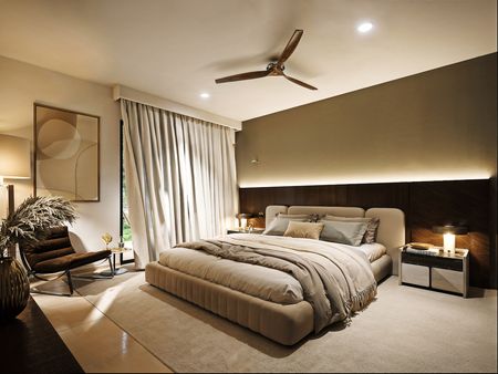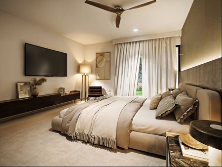 Recámara principal con clóset vestidor y baño completo.