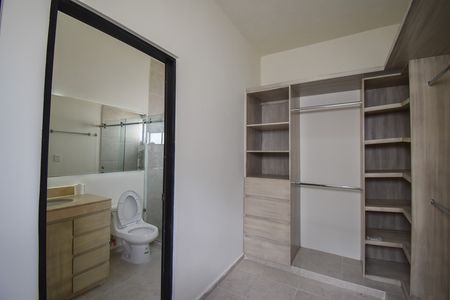 Recámara principal con baño completo y walk-in closet Clóset de blancos