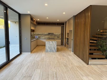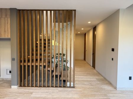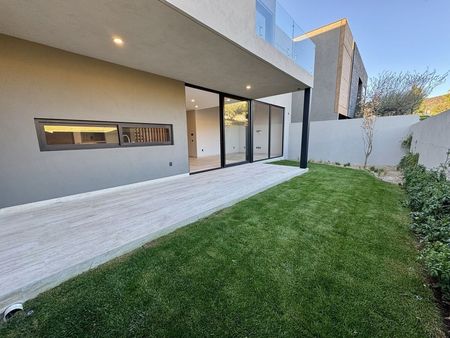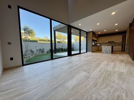 Planta baja: cochera techada para 3 autos, sala a doble altura, comedor, moderna y equipada cocina abierta, sala y alacena, recámara en planta baja con baño, medio baño para visitas, terraza, amplio jardín de 43m2, cuarto de servicio, cuarto de lavado y área de tendido, bodega, pasillo de servicio.