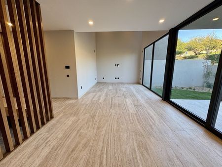 cancelería de PVC, puertas de encino, chapa de seguridad clave y lector de huella, luminarias en led, cisterna, presurizador para agua, calentador de paso para 4 servicios, salidas para mini Split encada recamara, sistema inteligente