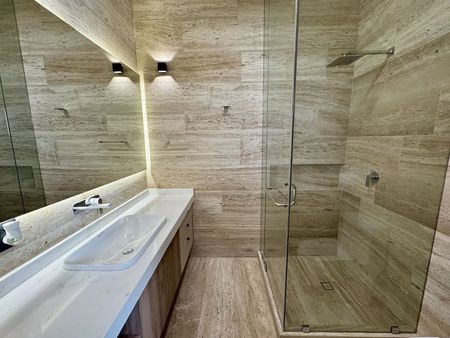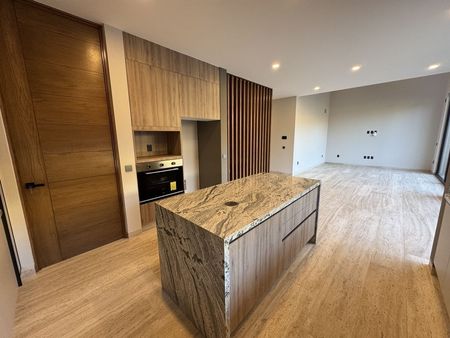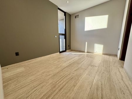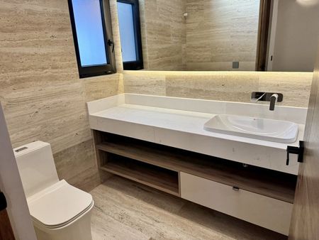 cancelería de PVC, puertas de encino, chapa de seguridad clave y lector de huella, luminarias en led, cisterna, presurizador para agua, calentador de paso para 4 servicios, salidas para mini Split encada recamara, sistema inteligente