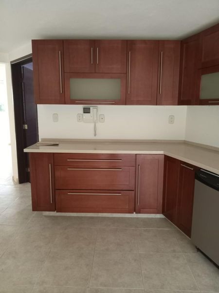 Preciosa cocina equipada muy amplia, con espacio suficiente para desayunador, la cocina integral cuenta con recubrimientos de corian de excelente calidad doble tarja de acero inoxidable, lava vajillas, cuenta con una muy bonita terraza