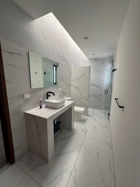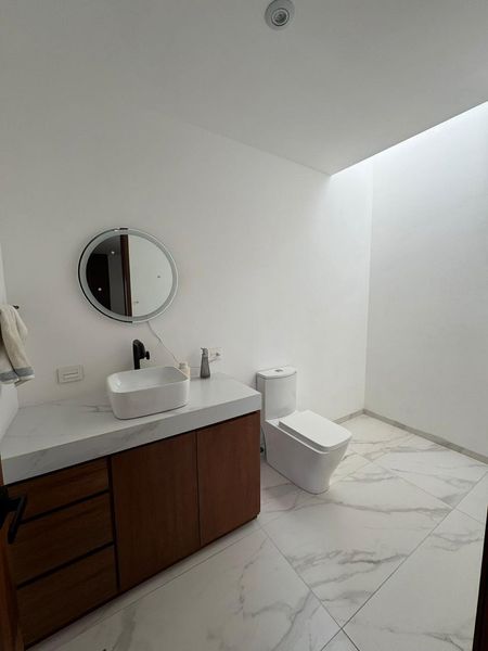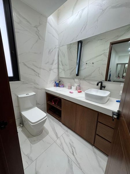 Segundo nivel: 3 habitaciones cada una con su baño completo, la principal con vestidor, closet de blancos, bodega, área de lavado.