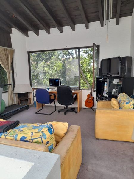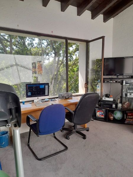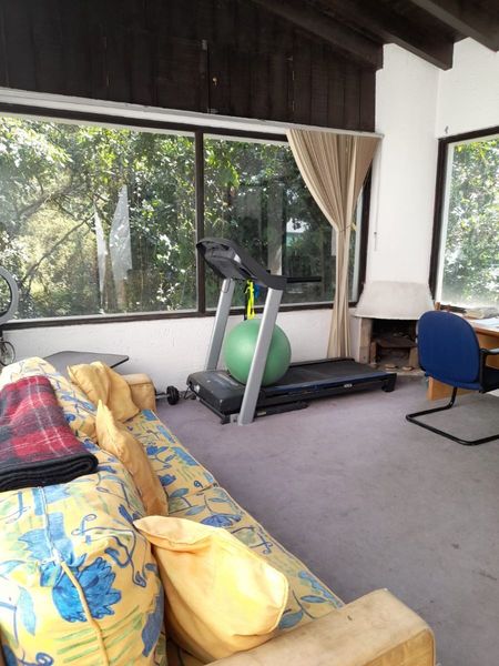 Tiene un salón de juegos y usos múltiples muy grande y flexible. Con espacio para poner tu mesa de billar o para hacerlo tu sala de música, hasta hacerlo eso que tú siempre has querido como un cine en casa, incluso un gimnasio si sales a su jardín, encontrarás árboles frondosos y encontrarás como la topografía va contornando su espacio, y puedes hacerlo un jardín muy singular. Ya que su terreno abosado hacia la porte posterior se abre esplendorosamente a la cañada boscosa colindante. Cuenta con enorme patio elevado medio nivel a lo alto del jardín con asador, ideal para poner su pérgola y organizar fiestas o reuniones.