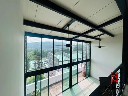 LA CASA TIENE UNOS VENTANALES DOBLE ALTURA CON VISTAS ARBOLADAS ESPECTACUALRES PARA CONCETAR CON LA NATURALEZA.