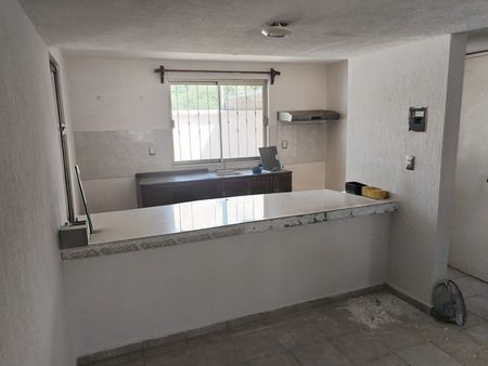 Cuenta con 3 recámaras, 1 baño completo, sala comedor, cocina, medio baño de visitas, patio, jardín privado y garage para 2 autos con portón eléctrico.
