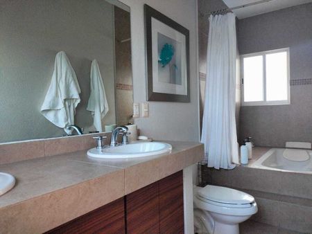 Planta alta: sala de TV, recámara principal con vestidor, baño y tina, 2 recámaras secundarias con baño y closet cada una.
