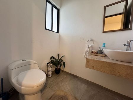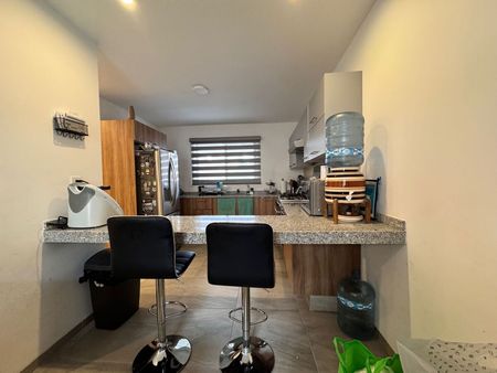 Planta Baja: Recibidor, sala comedor, cocina integral con barra desayunador, medio baño para visitas, jardín, cochera techada 2 autos.