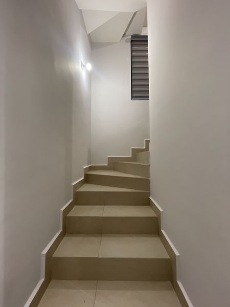 Estudio con medio baño y acceso por escaleras exteriores en pasillo lateral.