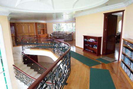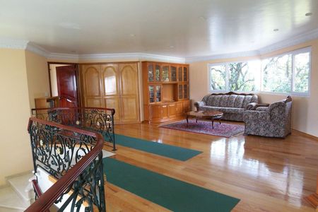 Imponente área social: sala, comedor, family room , despacho , tres chimeneas, cocina y solarium. Cuatro recámaras cada una con su personalidad propia, baños con tres jacuzzis y una tina, dos terrazas y sala de T.V.