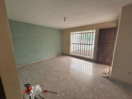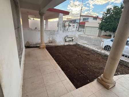 Esta casa ubicada en una calle tranquila de la colonia Jardines de Mérida, cuenta con una extensión de terreno de 195 m2 (9.75 m x 20 m) y consta de 2 habitaciones, 2 baños, un cuarto de servicio, sala, comedor, cocina, área de tv y cochera techada.