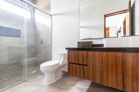 3 baños completos, equipados con carpintería en parota, cubiertas de granito y canceles de cristal templado.