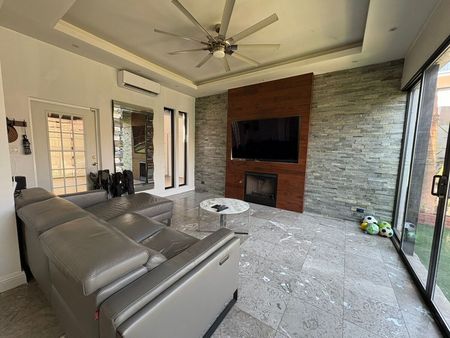 • Cuarto de TV y puertas corredizas hacia el jardín y la alberca