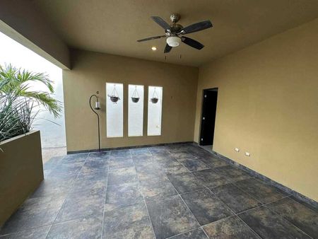 Terraza techada con 1 baño completo que da servicio a la piscina.