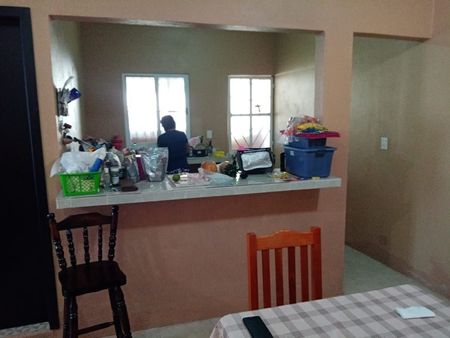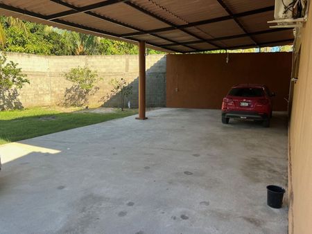 Sala. comedor. cocina, 3 habitaciones con baño. cochera para 4 vehiculos y patio amplio.