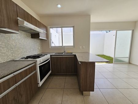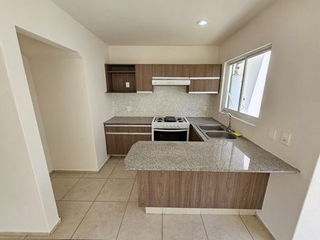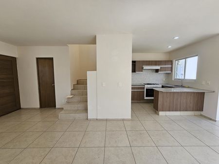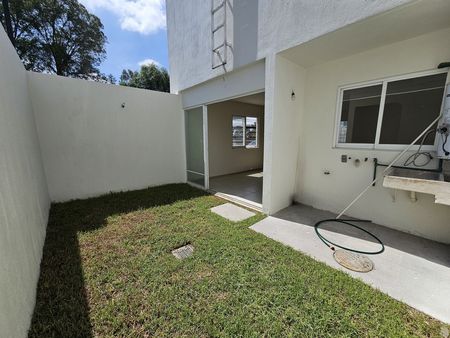 PLANTA BAJA: Cochera 2 autos con reja, cocina integral, área de sala-comedor, medio baño, amplio jardín y patio de lavado.