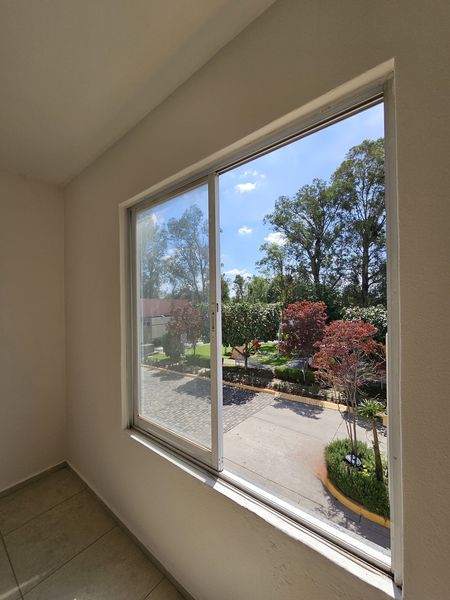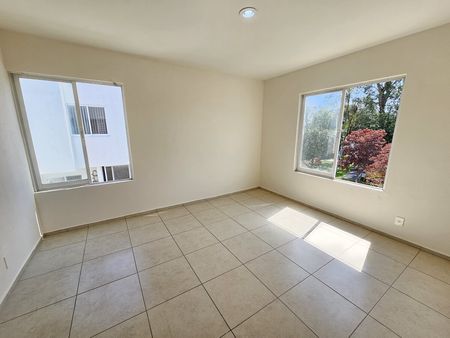 Recámara principal con balcón y recámara secundaria con ventana con vista al parque de coto contiguo.