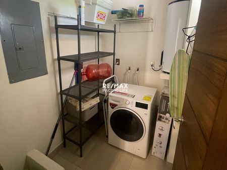 Cuarto de lavandería y estacionamiento techado para 2 vehículos.