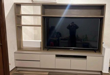Amplia estancia con mueble de madera para TV.