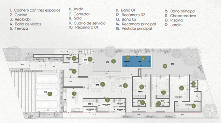 compuesto por 104 lotes residenciales distribuidos en un poco más de 10 hectáreas, todos con vista a áreas comunes y jardineras totalmente animadas y arboladas.