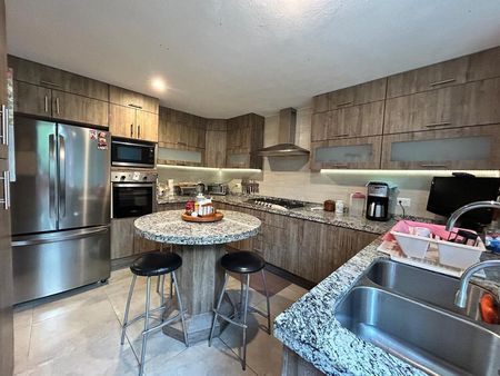 * Cocina integral equipada con barra de granito, isla central y área de lavado