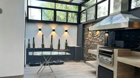 La casa cuenta con tres recámaras, siendo la principal un refugio privado con vestidor y baño completo. En total dispone de dos baños y medio, amplia sala y comedor, así como una cocina integral moderna diseñada para quienes disfrutan del buen vivir. En la parte social encontrarás una terraza techada con cantina y asador, perfecta para convivencias familiares y reuniones con amigos.