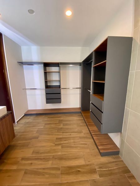Primer piso: star de tv pequeño, 3 habitaciones, 1 recámara principal con vestidor y baño completo abierto y doble ovalin, 2 habitaciones con clóset y comparten un baño completo… todas las habitaciones con salidas para aires acondicionados…