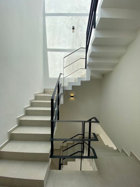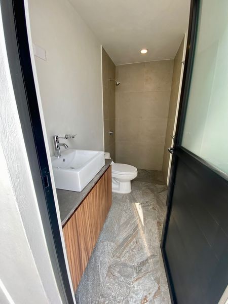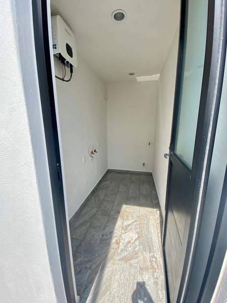Planta baja: cochera 2 autos con cargador eléctrico TESLA, chapa inteligente en puerta sólida de parota, cámara de sensor de movimiento con luz, estudio o cuarta recámara con baño completo, iPad en pasillo para controlar dispositivos y Alexa, cocina integral de granito equipada parrilla, horno y campana y tarja doble profunda, sala y comedor con salida para aire acondicionado y terraza al aire libre.