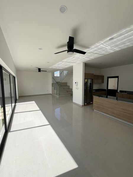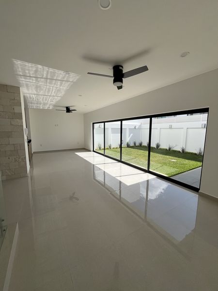- Espacio amplio para sala y comedor, con entrada de luz natural por medio de sus ventanales de piso a techo conectados hacia el jardín.
