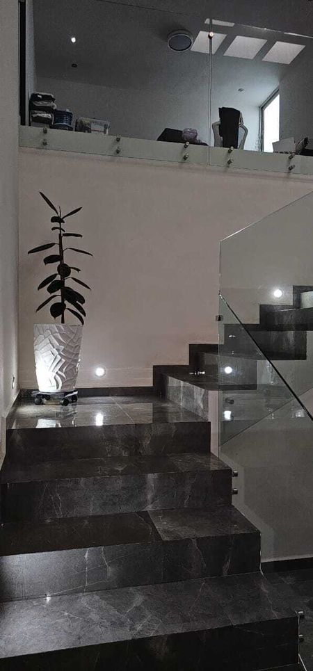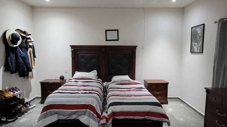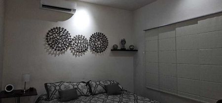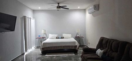 Recámara principal, con terraza con vista al jardín, closet-vestidor, baño completo, recamaras secundaria, terraza con vista al jardín, closet-vestidor y baño completo, amplia estancia, recamara secundaria con espacio para vestidor, baño completo, cada recamara cuenta con abanico de techo y minisplit, incluyendo la recamara en planta baja.