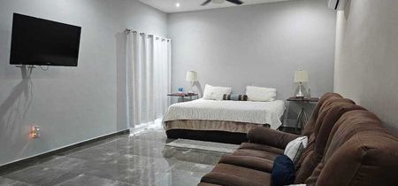 Bellísimo Jardín, con Palapa, abanicos de techo, horno y asador de acero inoxidable, 2 extractores, estufa de 2 quemadores de gas, Barra de cuarzo para 7 bancos, lista para sus reuniones, o simplemente contemplar la belleza de la naturaleza