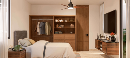 Recámara 2 con área de closet vestidor (incluye carpintería) y baño completo