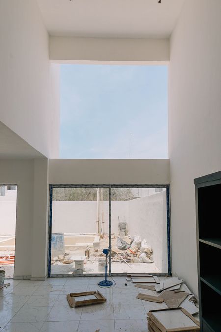 con doble altura y media con vista a la piscina | Medio baño de visitas | Cocina con isla desayunadora y carpintería inferior | Cuarto de lavado.