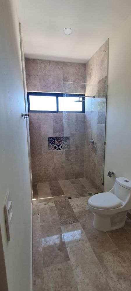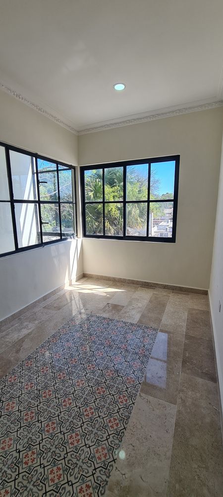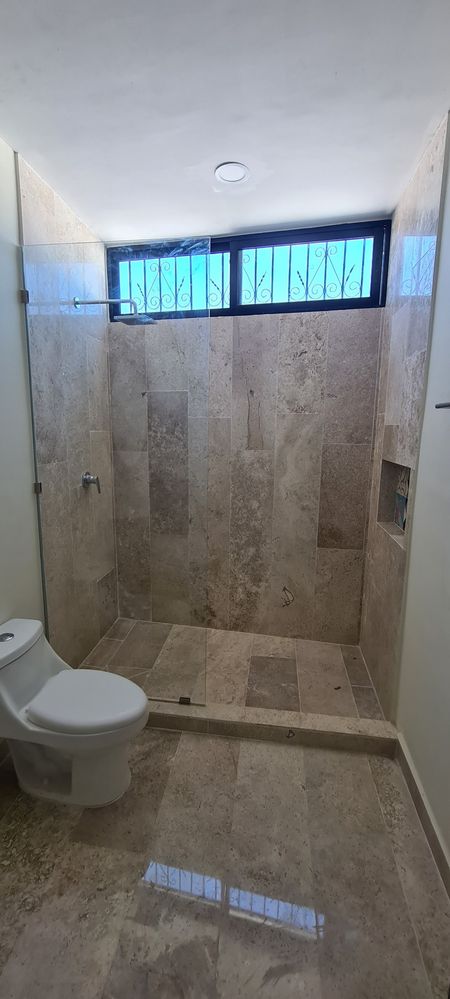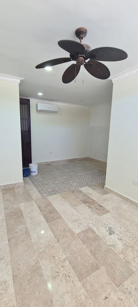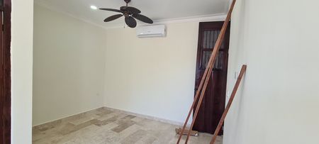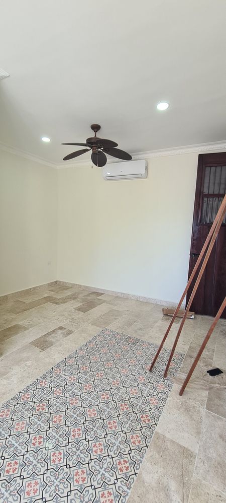 Cuenta con 3 habitaciones equipadas con AC y Ventiladores con closets 1 en planta baja y 2 en planta alta.