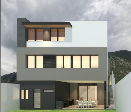 Casa en construcción en fraccionamiento privado Mítica Residencial. Cuenta con seguridad 24/7 y caseta de entrada. Esta casa con un frente de 11 metros, cuenta con 3 plantas y una cochera para 3 carros.