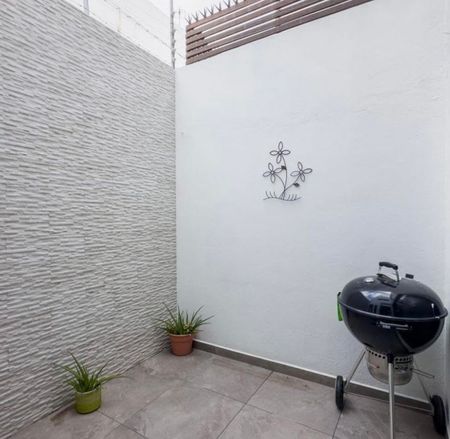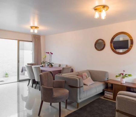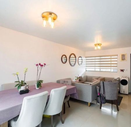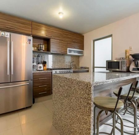 Hermosa casa de tres niveles con diseño moderno y excelentes acabados. Cuenta con 82.6 m² de terreno y 150 m² de construcción. En planta baja dispone de sala, comedor, cocina integral con isla de granito, medio baño, cuarto de lavado, patio y cochera para dos autos. En el segundo nivel se ubican tres recámaras: una con baño completo privado y dos que comparten baño. En el tercer nivel se encuentra la recámara principal con clóset, baño completo, tina de hidromasaje y acceso a un amplio roof garden.