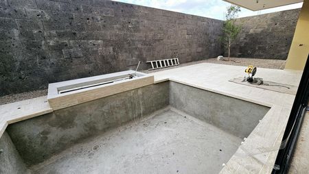 Alberca con mosaico veneciano, calentador solar y cubierta térmica.