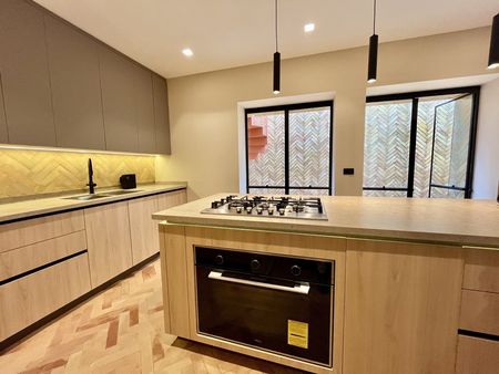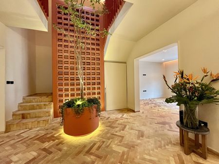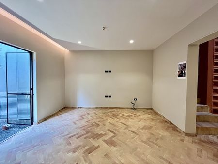 Ventanas y puertas con hierro forjado, cantera, gran cubo de luz en escalera central, arcos, espacios abiertos y luminosos. Joya arquitectónica, casa reconstruida lista para estrenarse.