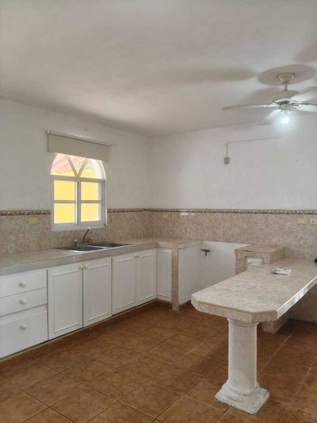Amplia Sala, comedor, Habitación con baño y clóset, medio baño, Cocina con gavetas y barra de piedra, despensa, cuarto de servicio independiente