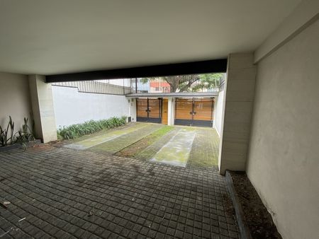 Estacionamiento para 2 autos grandes o 4 pequeños. Afuera se pueden estacionar 3 autos frente a la casa. Las puertas del estacionamiento son eléctricas