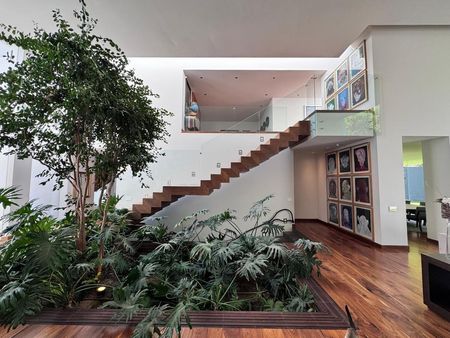 El jardín rodea toda la residencia brindando una vista excelente y luz a la casa, el jardín tiene entrada independiente que conecta a una terraza y un baño social. La cocina con acabados de lujo, totalmente equipada incluye una gran alacena con un gran almacenamiento. La residencia tiene un precioso vestíbulo recibidor con jardinera, sala comedor, antecomedor , family room con baño, despacho y baño de visitas.