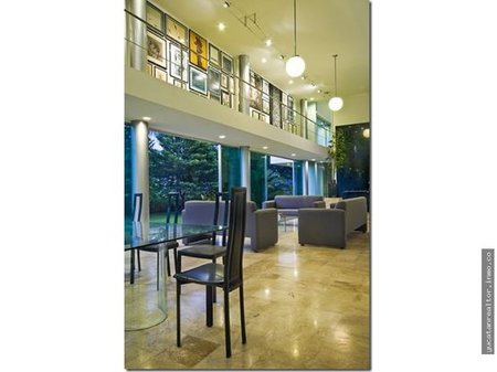 • Suite de visita con zona de lectura con suelos de mármol travertino Fiorito