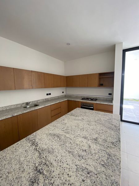 A estrenar Casa Unica en diseño de 364 m2 habitables en 497 m2 de terreno. Altura de 3 mts en techos , barra de granito en cocina , carpinteria. Distribuida en una sola planta. Cuenta con 3 habitaciones completas con baño completa y vestidor cada una. Muy iluminada, cuanta con jardin , alberca privada, cuarto de servicio con baño, patio de servicio y terraza. Espacio para 4 autos, medio baño de visitas, pozo, presurizado, calentador. Casa Sola. Citas al 322 289 0552 con Karla Orozco. Property by Realkor.