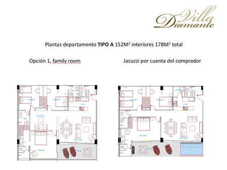TIPO A: Departamentos de 178M2 total aprox. 152M2 interiores y 26M2 para 2 cajones de estacionamiento
